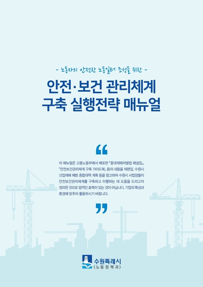 사진/‘안전·보건 관리체계 구축 실행전략 매뉴얼’ 표지(수원시 제공)