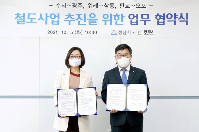 이날 협약식은 양 시가 협력해 추진 중인 철도사업의 원활한 추진을 위해 마련됐으며 지하철 8호선 판교·서현·분당·오포 철도건설 추진위원회의 참여로 시민 염원을 반영한 보다 뜻깊은 협약이 이뤄졌다.