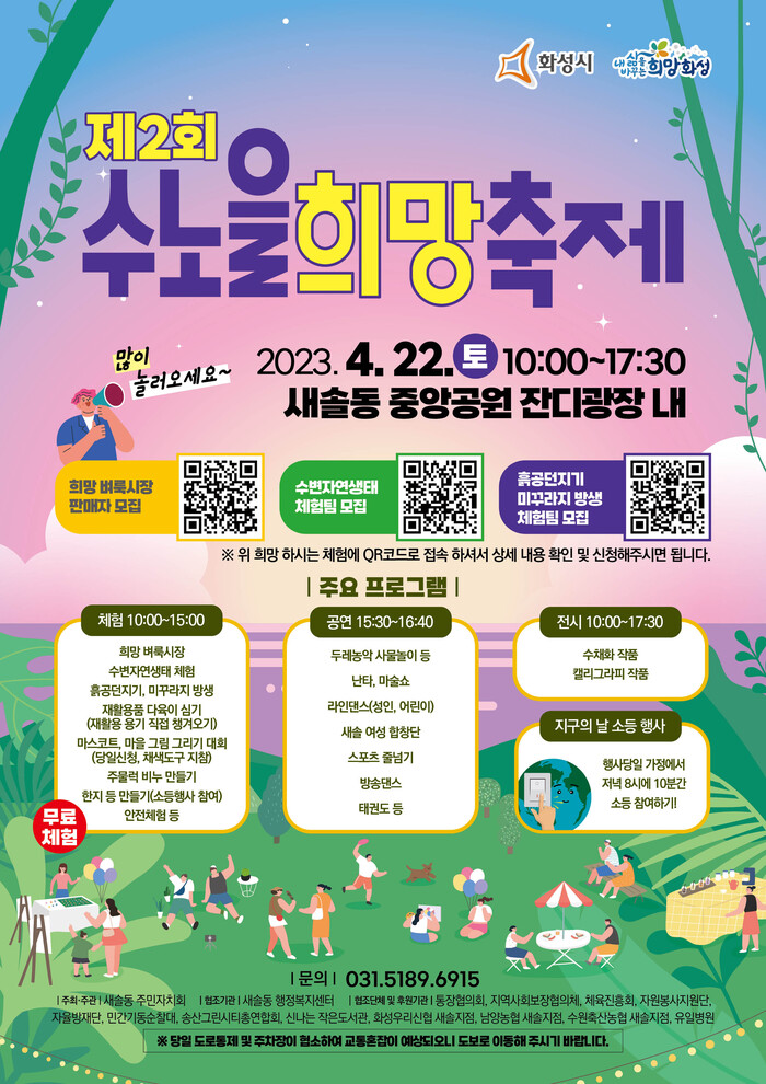 화성시 새솔동 주민자치회가 오는 22일 ‘제2회 수노을 희망축제’를 개최한다.
