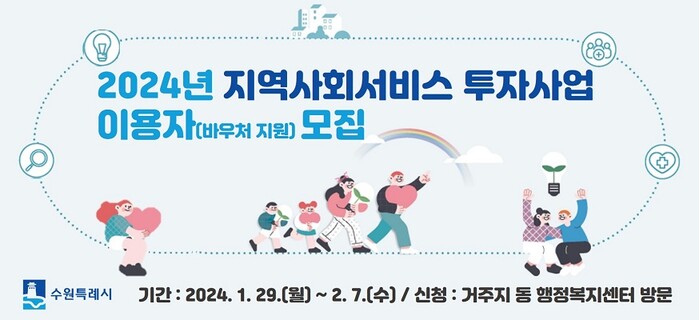 수원시가 1월 29일부터 2월 7일까지 ‘2024년 지역사회 서비스 투자사업’ 이용자를 모집한다.