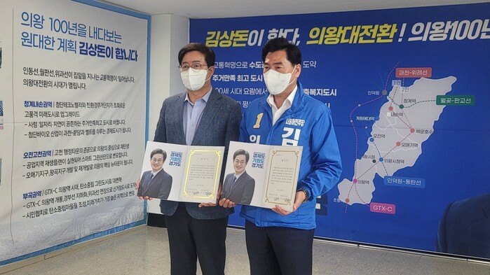 [로컬라이프] 송준형 기자 = 김상돈 의왕시장 후보(더불어민주당)는 18일, 김동연 경기지사 후보님과 교통혁명 의왕대전환 6대 공약을 함께 추진하기로 협약식을 가졌다고 밝혔다.
