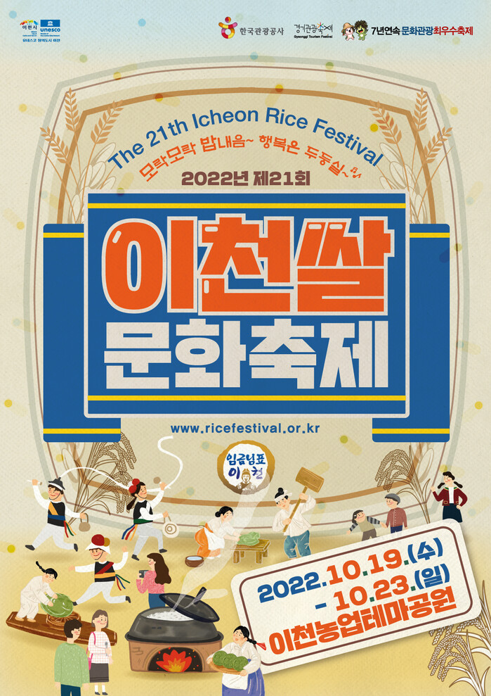 이천시(시장 김경희)는 7년 연속 대한민국 문화관광최우수축제로 선정된 제21회 이천쌀문화축제의 포스터를 공개하며, 오는 가을에 찾아올 이천쌀문화축제의 기대감을 높였다.