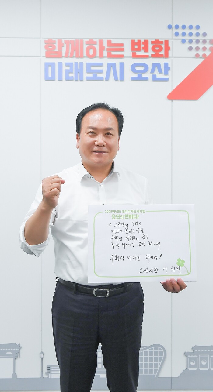 이와 관련해 이권재 오산시장은 12일, 자신의 페이스북을 통해 수험생 자녀를 둔 부모님의 간절한 마음을 담아 응원의 문구를 자필로 써봤다고 말했다.