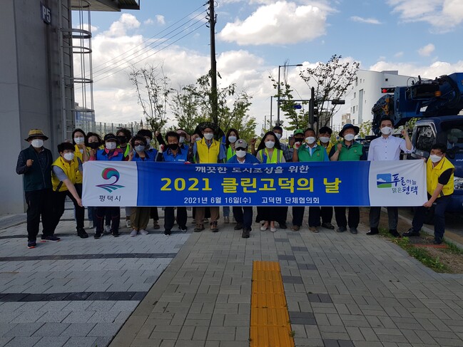 이번 대청소에는 정일구 평택시의회 시의원과 고덕면 단체협의회(바르게살기위원회, 이장협의회, 새마을지도자협의회 등), 고덕면행정복지센터 직원 등 30여명이 참여해 코로나19 방역수칙을 준수하며 각종 일반쓰레기 등 생활쓰레기 총 2톤을 수거했다.