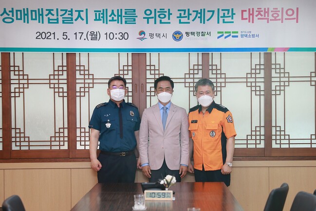 정장선 시장은 “평택역주변 정비 기본계획 일환인 성매매 집결지 정비에 힘을 모아 주신 경찰과 소방서에 감사드린다. 집결지 정비과정 중 성매매 피해자 보호에 중점을 두고 사회적 부작용이 최소화 되도록 행정력을 집중하겠다”라고 말했다.