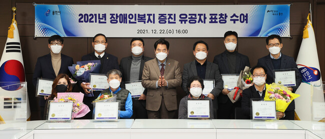 용인시가 22일 장애인복지 증진에 기여한 유공자들에게 표창을 수여했다.