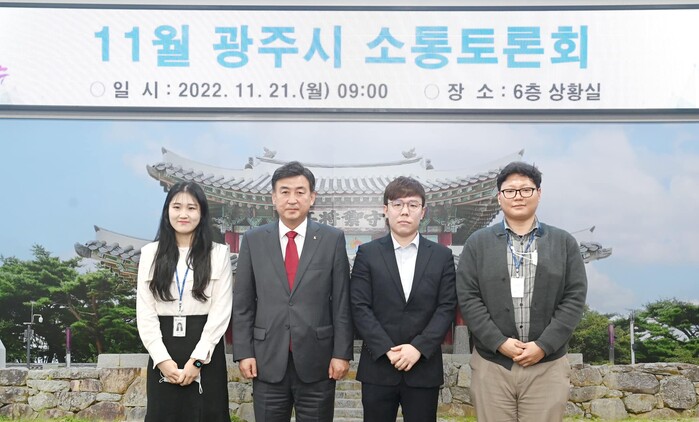 방 시장은 특히 소통토론회는 7~9급 공무원들이 주축이 되어 일하는 방식 개선·조직 내 소통문화 확산·시정 발전 관련 각종 정책 제안 등 다양한 주제를 연구하고 의견을 제시하는 소모임으로, 젊은 직원들의 신선한 시각과 아이디어를 시정에 반영해 보고자 ‘광주혁신주니어보드’를 구성하여 운영하고 있다고 말했다.