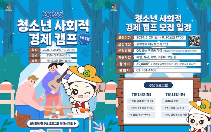 [안성=로컬라이프] 송준형 기자 = 전국사회연대경제지방정부협의회는 오는 7월 24일과 25일 양일 간 광명에서 ‘2025 청소년 사회적 경제 캠프’를 개최한다.