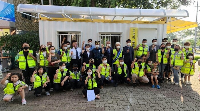 이날 외국인 자율방범대(이하 도곡리 푸른 자율 방범 순찰대)가 포승읍 여술4길 31-3번지 방범초소 앞에서 발대식을 갖고 순찰 활동도 병행했다.