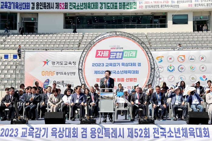 이상일 용인특례시장은 환영사를 통해 “오랜 시간 기다려 온 대회가 미르스타디움에서 개최된 것은 의미 있는 일”이라며 “임태희 경기도교육감과 체육계 관계자가 직접 응원하는 이 대회에서 학생 선수 여러분의 꿈과 희망이 실현되고 전국소년체육대회 대표 선수로 선발되기를 응원한다”고 참가 선수들을 격려했다.