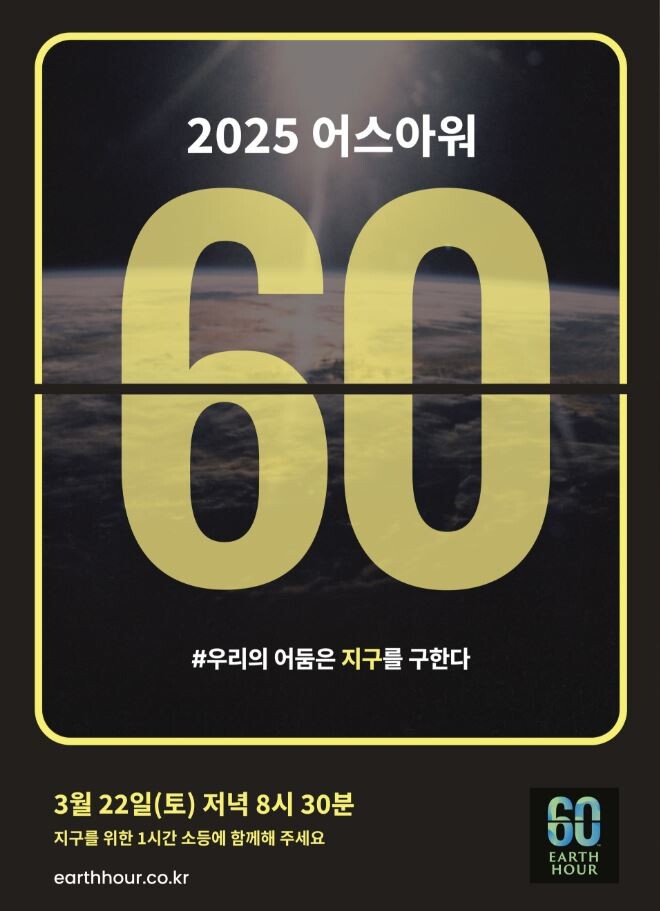 ‘어스아워’는 WWF(세계자연기금)에서 주최하는 전 세계적 환경 보호 캠페인이다. 매년 3월 마지막 토요일 저녁 8시 30분부터 9시 30분까지 1시간 동안 전등을 끄는 상징적 행동으로 기후위기 대응과 자연보전의 중요성을 알리고 있다. 올해는 오는 22일 개최한다.