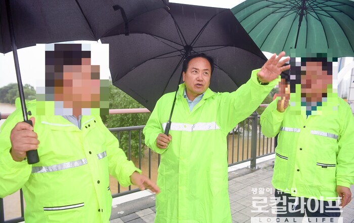 [오산=로컬라이프] 송준형 기자 = 이권재 오산시장이 호우상황에 대비해 지난 18일, 오산천을 점검했다.
