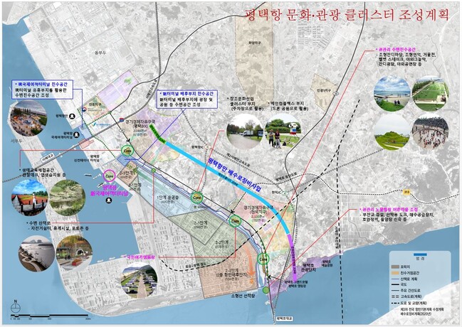 사업지 남측에는 권관항 노을힐링 어촌마을, 권관리 수변 친수공간, 평택호 관광단지, 평택항 2종 항만배후단지 사업이 추진되고 있고, 사업지 중간에는 평택항 국민여가캠핑장, 경기경제자유구역 현덕지구, 포승BIX가 추진 중이고, 북측에 추진 중인 평택항 新국제여객터미널 건설과 평택항 국제여객터미널 주변 개발사업(現국제여객터미널 부지 및 新국제여객터미널 배후단지 친수공간 조성, 평택함 활용 해양안전체험관 조성) 등을 연결하게 될 예정이다.