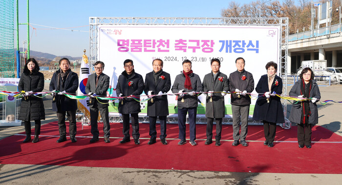 성남시의회 이덕수 의장, 조우현 의원, 박명순 의원, 민영미 의원이 23일 명품탄천 신규 체육시설(축구장) 개장식에 참석했다.
