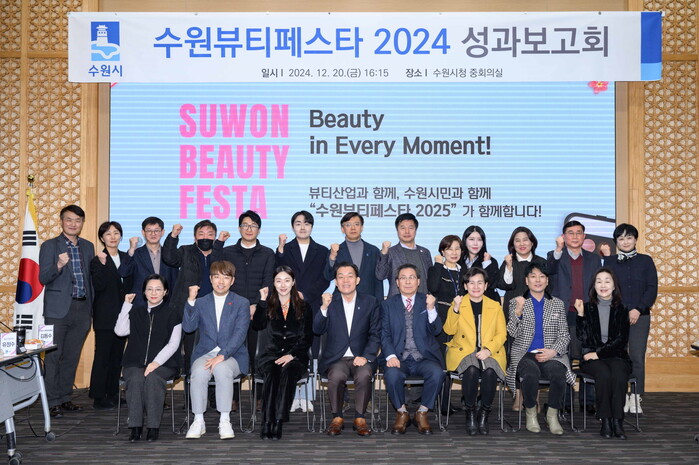 수원시는 20일 시청 중회의실에서 수원뷰티페스타 2024 성과보고회를 열었다. 이날 보고회에는 이재준 수원시장, ‘수원뷰티페스타 2024’ 추진단(단장 현근택 제2부시장), 참가기업 대표 등이 참석했다.