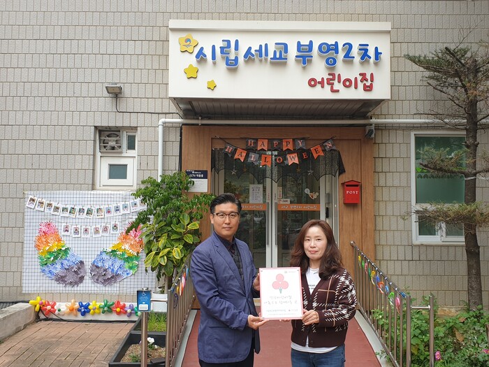 평택행복나눔본부는 지난 10월 28일, 시립세교부영2차어린이집(원장 조미례)에 착한가게 현판을 전달했다.