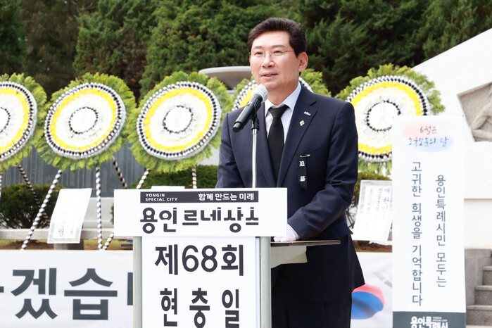 이어 ”지금 우리가 살고 있는 대한민국은 목숨바쳐 헌신한 호국영령과 순국선열의 희생이 있었기에 가능했다“며 ”제68회 현충일을 맞아 국가 존립 이유와 애국의 참뜻을 되새기면서 대한민국의 자유와 번영을 지키고 나라를 위해 헌신한 분들이 명예로운 삶을 살 수 있도록 용인특례시는 노력하겠다“고 덧붙였다.