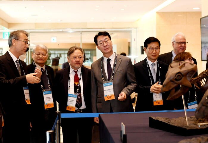8일 열린 개회식에서는 한국 공룡을 대표하는 ‘코리아케라톱스 화성엔시스’의 전신 복원 골격 레플리카 2점이 처음으로 공개돼 이목을 끌었다.