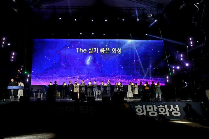이날 행사는 식전공연으로 이은미, 이찬원의 축하공연에 이어 100만 도시 선포 불꽃 드론쇼에서 형형색색의 조명장비가 탑재된 드론 300대가 화성시의 100만을 축하하는 다양한 형상을 그려냈다. 이어진 축하무대로 라포엠, 에일리, 윤도현 밴드 공연이 한파를 무색하게 할 정도로 시민들의 열띤 호응을 이끌어냈고 달을 형상화한 조형물이 오색빛의 분수와 어우러지는 ‘루나쇼’가 밤 하늘을 수놓으며 하이라이트를 장식했다.