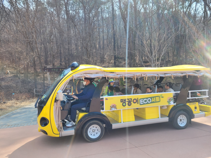 초막골 생태공원의 대표 깃대종이자 보호종인 맹꽁이를 캐릭터화한 디자인과, 공원 내 생태환경 보호를 위해 매연이 발생하지 않는 친환경 전기차로 제작된 14인승, 8인승 총 2량이 투입된다.