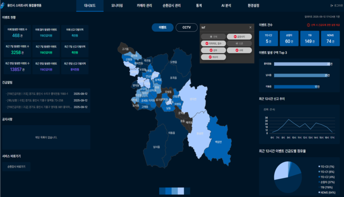 용인특례시(시장 이상일)는 사물인터넷(IoT·Internet of Things) 센서와 폐쇄회로(CC)TV를 스마트시티 통합 플랫폼에 연계한 재난 대응 시스템을 구축했다고 14일 밝혔다.