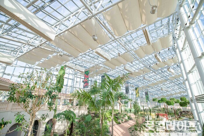 이어 “바람에 물결치는 억새와 핑크뮬리가 햇살에 눈부시고, 시원스레 가지를 뻗은 상록수들은 제철 만난 듯 초록을 뽐낸다. 멋쟁이 허수아비를 뒤로 하고 온실에 들어서면 계절을 잊은 이국의 꽃과 나뭇잎이 손짓한다”고 덧붙였다.