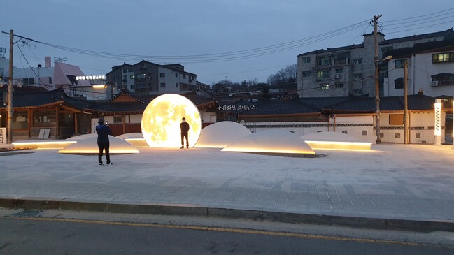 노후 주택이 밀집돼있고, 해가 지면 어둡고 적막했던 남수동의 변화가 눈에 띈다. 비가 새는 것을 막기 위해 덮어놓은 천막 때문에 흉물스러웠던 구옥(舊屋)의 지붕은 멋스러운 한옥 지붕으로 개량했고, 마을 한복판에는 ‘팔달산에 뜬 달’을 주제로 ‘경관조명 문화쉼터’를 조성했다.