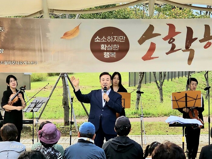 [의왕=로컬라이프] 송준형 기자 = 김성제 의왕시장은 20일 페이스북을 통해 오늘 저녁, 아름다운 백운밸리의 여울공원에서 드림월드필하모닉오케스트라의 '소·확·행'(소소하지만 확실한 행복) 공연이 있어 참석했다고 밝혔다.