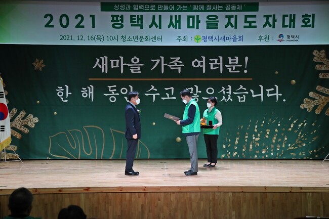 평택시새마을회(회장 최시영)는 지난 16일 평택시청소년문화센터에서 정장선 시장, 홍선의 시의회 의장, 유의동 국회의원 및 시・도의원, 평택시 주요 5개 단체장, 23읍면동 새마을지도자 80명이 참석한 가운데 ‘2021 평택시새마을지도자대회’를 개최했다.