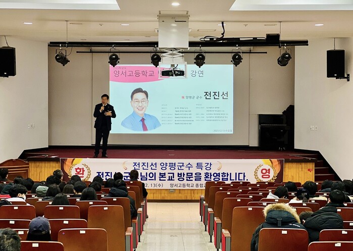 [로컬라이프] 송준형 기자 = 전진선 양평군수는 2024년 대입수능을 치른 양서고 3학년 학생들에게 “미래를 위해 준비하고 꿈에 도전하라”는 주제로 특강을 했다.