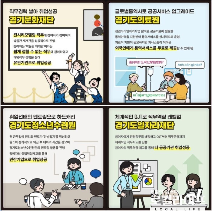이어 “이런 고민 끝에 경기도 내 공공기관, 사회적 기업, 협동조합 등에서 취업 연계가 가능한 공공분야 일자리 사업을 발굴하여 취업 취약계층을 대상으로 업무 경험 등을 제공하고, 이를 바탕으로 민간기업 취업까지 이어질 수 있도록 했다”고 밝혔다.