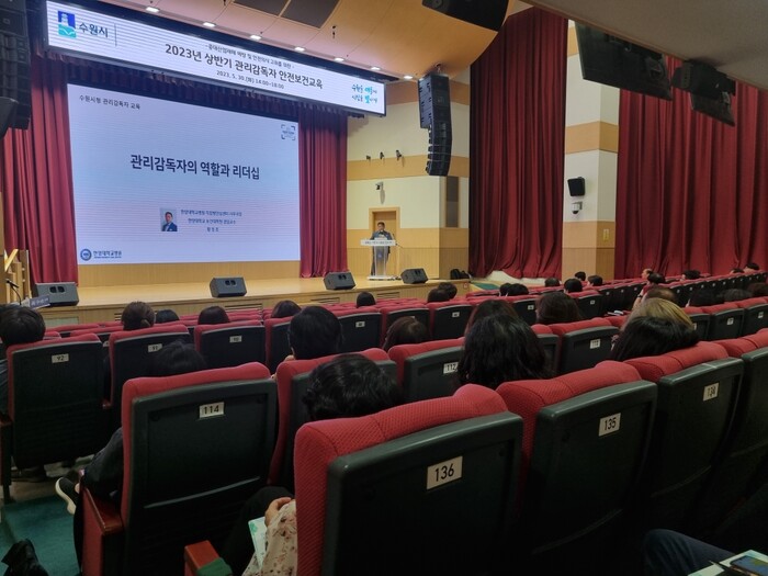 수원시가 중대산업재해를 예방하고 안전한 근로환경을 조성하기 위해 5월 30일 시청 대강당에서 관내 관리감독자를 대상으로 안전보건교육을 했다.