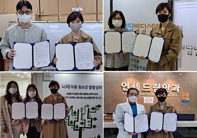 이번 협약에 따라 △오산시정신건강복지센터는 심리검사 지원, 정신건강 교육과 관련 프로그램 지원 △나래아동청소년발달센터와 보담발달센터는 심리상담 및 검사비용 무료 지원 △조은오산병원은 고위험군 아동 건강검진 운영지원, 검진비용 10% 지원 △연세드림안과는 안과검진 운영지원, 이상소견아동 치료 지원을 하게 된다.