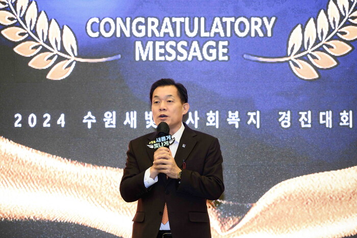 3일 수원월드컵경기장 르메르아이 연회장에서 열린 수원새빛 사회복지 경진대회 ‘유퀴즈 온 더 복지’에 함께한 이재준 시장은 “사회복지사 여러분 덕분에 수원새빛돌봄이 시민의 일상에 단단히 자리 잡을 수 있었다”며 “현장에서 손발 역할을 해 주신 사회복지사들이 계셨기에 가능했던 일”이라고 밝혔다.