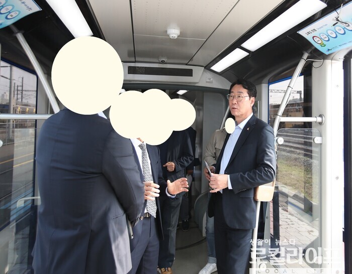 | ▲ 정명근 화성시장이 ‘동탄 트램’ 개통 준비 상황을 점검하고 있다. (사진출처=정명근 페이스북) |