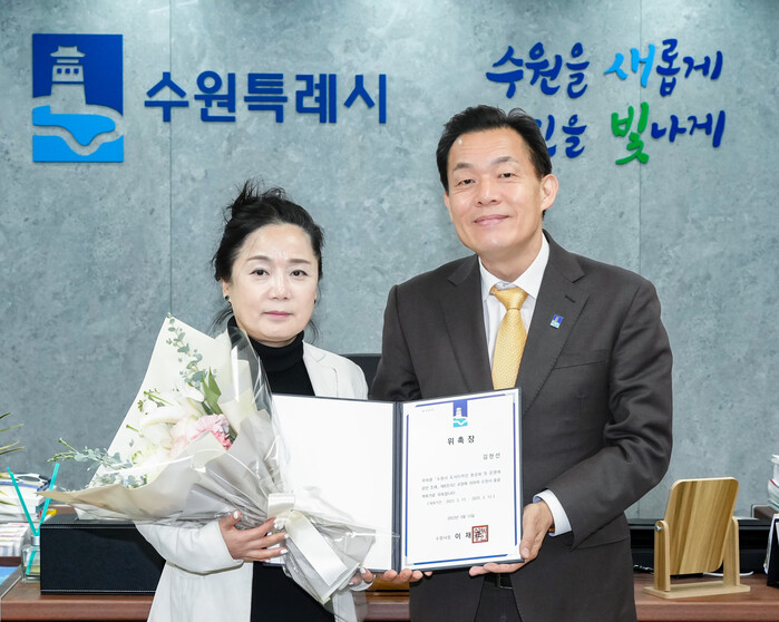 이재준 수원특례시장은 13일 집무실에서 김현선 교수에게 위촉장을 수여했다. 임기는 2년이다.