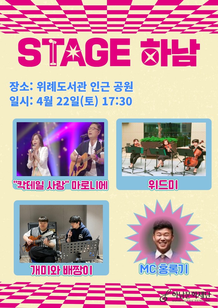 하남시는 위례도서관 근린공원, 미사역 문화의 거리, 하남시청 근린공원에서 ‘Stage 하남! 버스킹’을 진행(포스터 참조)한다고 20일 밝혔다.
