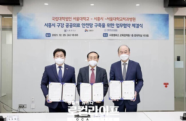 [시흥=로컬라이프] 송준형 기자 = 시흥시와 서울대학교, 서울대학교치과병원은 29일, ‘시흥시 구강 공공의료 안전망 구축을 위한 업무협약’을 체결했다.