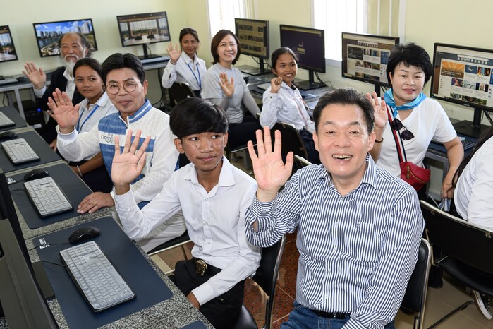 그래서 프놈끄라옴에 수원마을이란 이름을 걸고 공동 우물과 화장실부터 지었다. 영어·한국어·크메르어·컴퓨터·태권도를 가르치고, 체계적인 교육을 위해 ‘수원 초·중·고등학교’도 세웠다고 밝혔다.