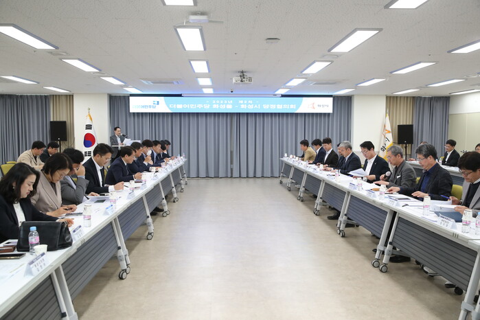 지난 31일, 이원욱 더불어민주당 화성을 지역위원장과 정명근 화성시장을 비롯한 도의원, 시의원, 관련 국소장은 동탄출장소 대회의실에 모여 당정협의회를 개최하였다.
