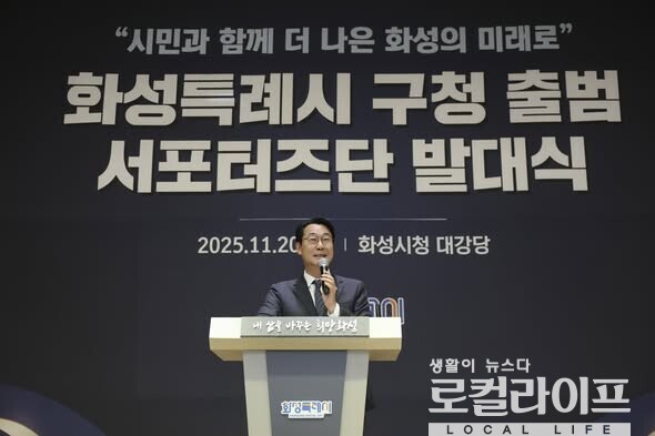 20일 열린 발대식에 참석한 정명근 화성특례시장은 자신의 페이스북을 통해 “지난 8월, 106만 화성특례시민의 오랜 염원이었던 4개 구청 설치를 최종 승인받았다”며 “우리 화성특례시는 내년 2월, 보다 가까운 곳에서 더 빠르게 서비스를 제공하는 ‘30분 행정 시대’를 열기 위해 만반의 준비를 하고 있다”고 밝혔다.