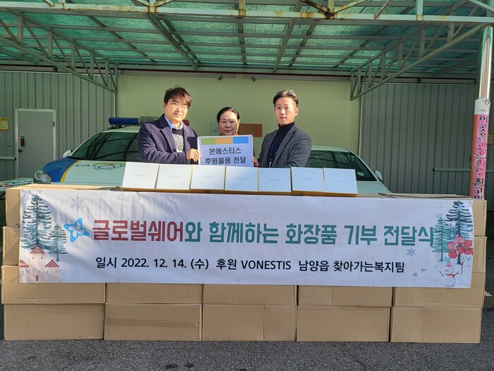 남양읍은 14일 국제구호개발 NGO단체인 (사)글로벌쉐어로부터 1억 원 상당의 화장품 세트를 기탁 받았다.
