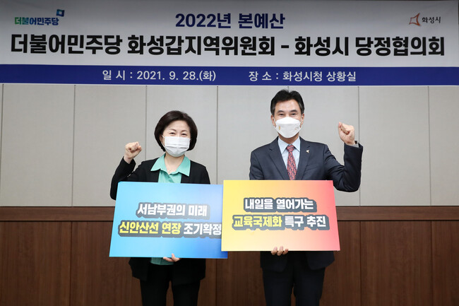 송 위원장과 서 시장은 28일 오후 시청에서 열린 ‘더불어민주당 화성갑지역위원회-화성시 2022년 본예산 당정협의회’에서 이같이 뜻을 모았다.