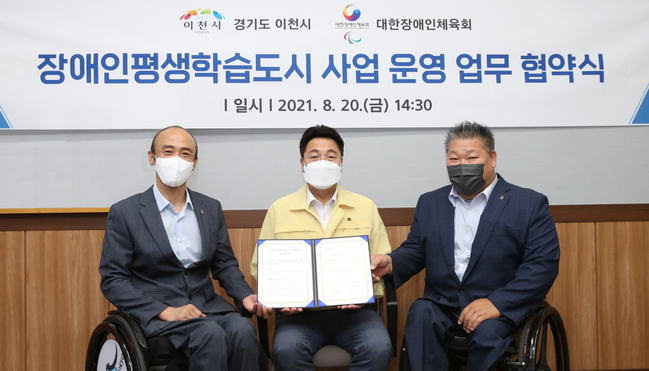 교육부(국립특수교육원)가 주관하는 장애인평생학습도시에 선정된 이천시(시장 엄태준)가 대한장애인체육회(회장 정진완)와 장애인평생학습의 활성화를 위해 지난 20일(금) 업무협약을 체결했다.