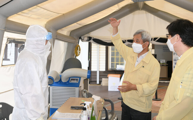 [로컬라이프] 곽상욱 오산시장은 6일, 자신의 페이스북을 통해 코로나19 대응의 최일선을 담당하고 있는 선별진료소, 임시선별검사소, 백신예방접종센터 등을 둘러보았다며, 뜨거운 날씨에 시민들을 위해 최선을 다하는 직원들과 자원봉사자분들께 정말 감사하다고 전했다.