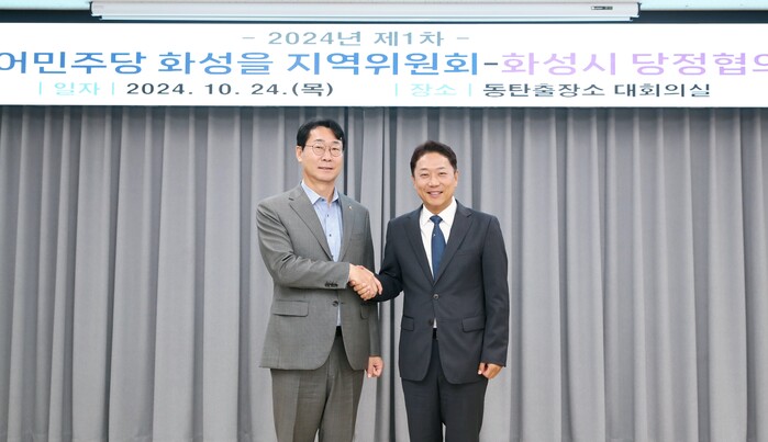 24일, 진석범 더불어민주당 화성을 지역위원장과 정명근 화성시장을 비롯한 도의원, 시의원, 관계 공무원 등이 동탄출장소에 모여 지역현안을 논의하기 위해 당정협의회를 개최했다.