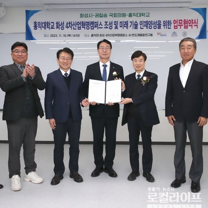 [화성=로컬라이프] 송준형 기자 = 화성시와 홍익대학교가 ‘4차산업혁명캠퍼스 조성 및 미래 기술 인재양성’을 추진한다. 이를 위해 양 기관은 16일, 관련 업무협약을 체결했다.