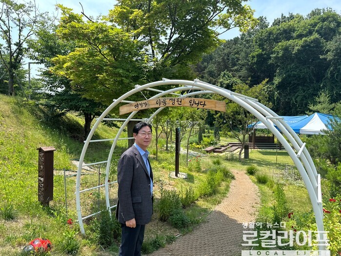 | ▲ 정명근 화성시장이 동탄4동에 소재한 이음정원을 방문하고 있다. (사진출처=정명근 페이스북) |