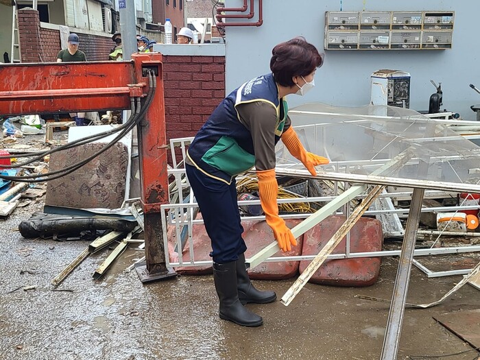 그러면서 현장에서는 안양시 환경공무관님들과 지역 군인들이 복구를 위해 굵은 땀을 흘리고 있었다며, 조금이라도 힘을 보태기 위해 안양시의회 사무직원들과 함께 침수 피해가 심한 지역으로 와 집기류를 옮기며, 지역 주민분들과도 이야기를 나누었다고 전했다.
