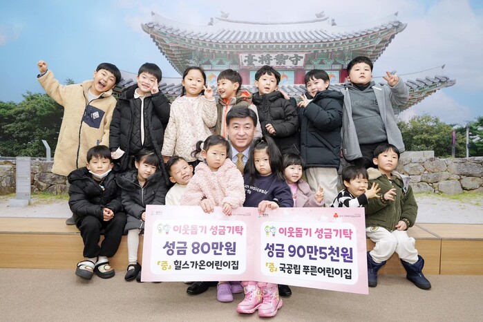 이날 방 시장은 자신의 페이스북을 통해 국공립 푸른어린이집과 힐스가온 어린이집 원아들이 선생님들과 함께 시장놀이와 아나바다 운동을 통해 조금씩 모아온 돈을 이웃돕기 성금으로 기탁해 주었다고 전했다.
